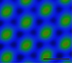 Atomically resolved image of twisted-trilayer graphene obtained by scanning tunneling microscope.Scale bar 10nm. Credit: Nadj-Perge Lab.